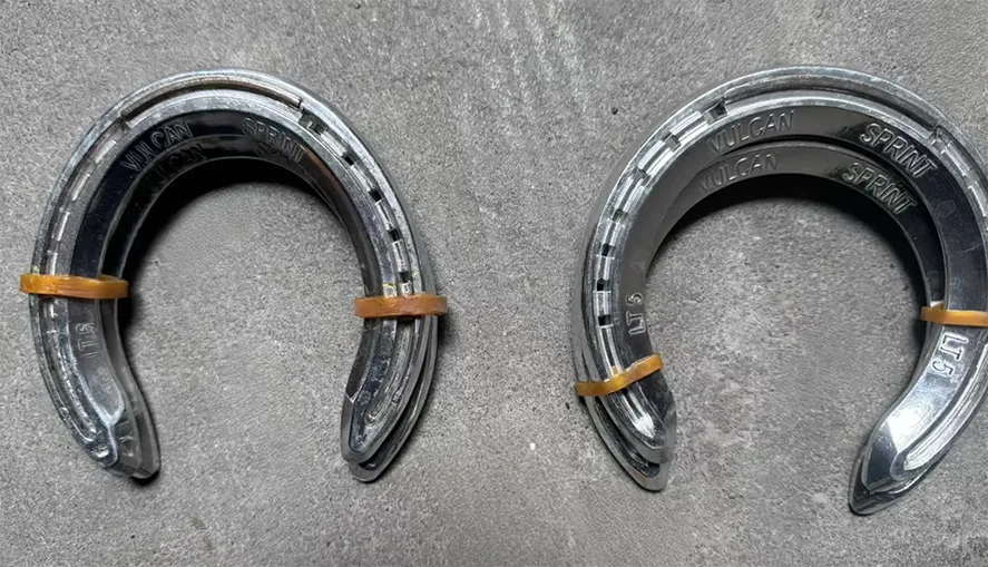 No entanto, para corridas de cavalos de velocidade, os cavalos usam principalmente ferraduras de alumínio. Embora o alumínio seja muito menos duro e resistente ao desgaste do que o aço, a sua principal vantagem reside no desempenho ultraleve. Cada grama extra pode ser a diferença entre vencer e perder em corridas de curta distância. Ferraduras leves de alumínio minimizam a carga e o consumo de energia do cavalo, permitindo-lhes correr mais rápido na pista. Um único par de ferraduras de alumínio pode durar apenas uma corrida de alta intensidade, mas a vantagem de velocidade que traz é inestimável.